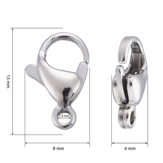 Stainless Steel Lobster Clasp 13x8mm - Pack of 10