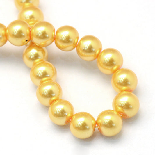 Glass Pearl Beads 6mm (1.0mm Hole) Gold - One Strand of Approx 145 Beads
