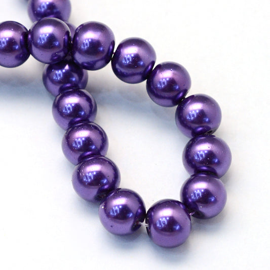 Glass Pearl Beads 6mm (1.0mm Hole) Purple - One Strand of Approx 145 Beads