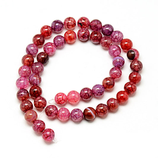 Natural Dragon Veins Agate Beads 8mm Crimson - Approx 48 Pcs per Strand