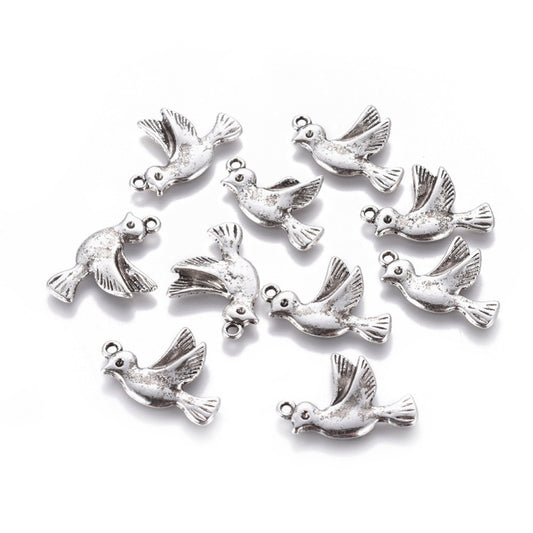 Silver Dove Charms 22x15x3mm (1.5mm Hole) - Pack of 50