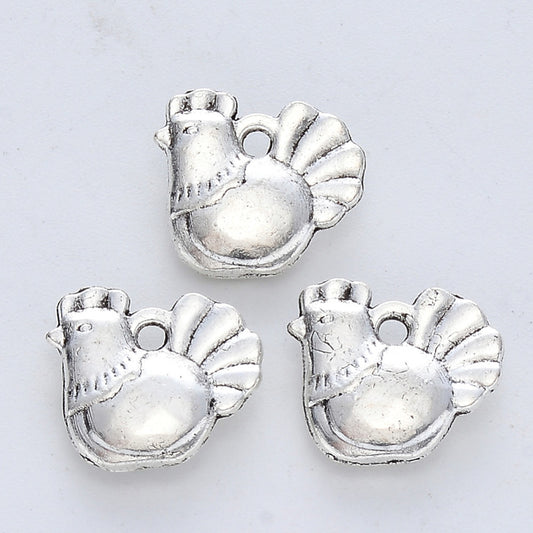 Chicken Charms Antique Silver 12x13x3mm - Pack of 20