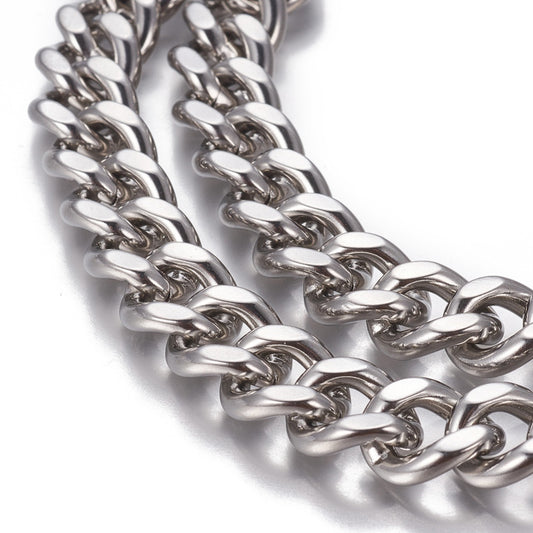 Stainless Steel Curb Chain Twisted Link Faceted 14x12x5mm - 1 Metre