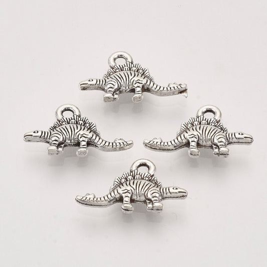 Stegosaurus Dinosaur Charms Antique Silver 9.5x16x2.5mm - Pack of 50