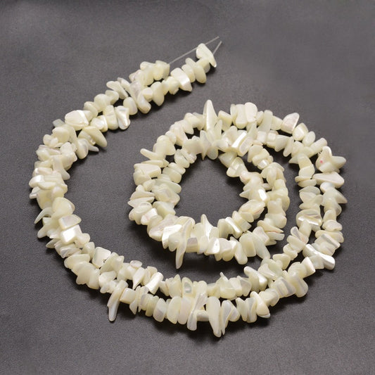 Natural White Mother of Pearl Chip Beads 5-8mm Wide - 32" Strand