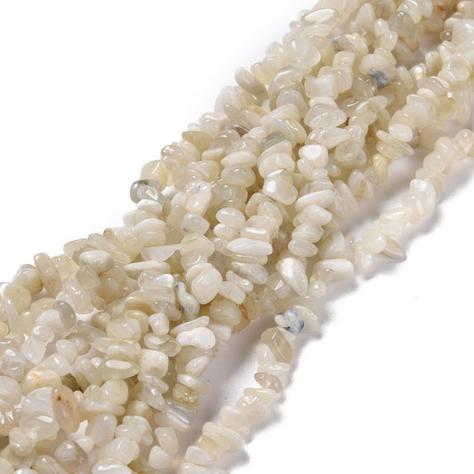 Natural White Moonstone Chip Beads 5-8mm Wide - 32" Strand