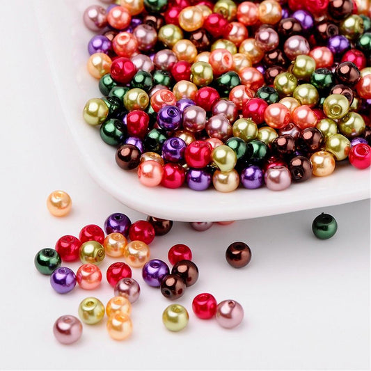 Glass Pearl Beads Mixed Colour, Mixed Size - Pack of 200