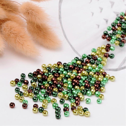 Glass Pearl Beads 4mm (0.8mm Hole) Choccy Mint Mix - Pack of 400