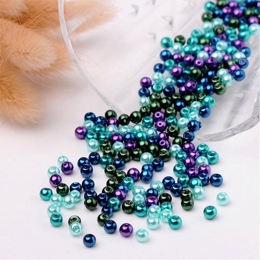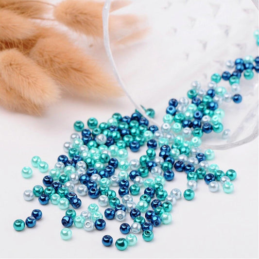 Glass Pearl Beads 4mm (0.8mm Hole) Ocean Mix - Pack of 400