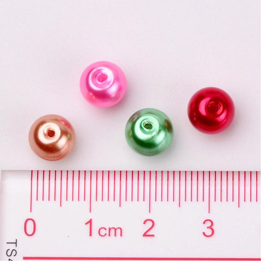 Glass Pearl Beads 8mm (1.0mm Hole) Christmas Mix - Pack of 100