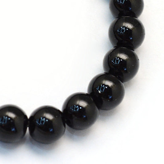 Glass Pearl Beads 4mm (0.8mm Hole) Black - One Strand of Approx 210 Beads