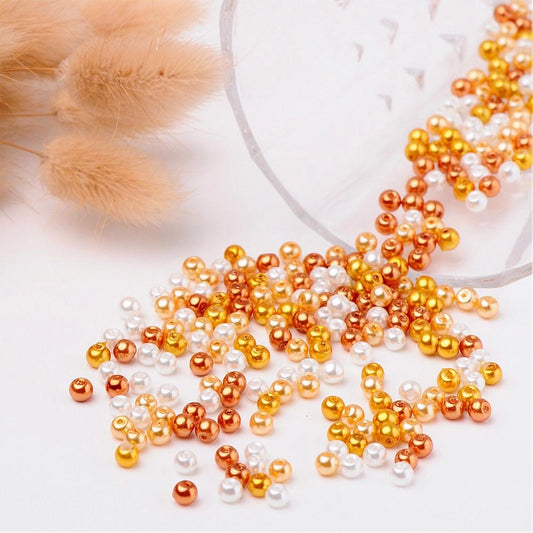 Glass Pearl Beads 4mm (0.8mm Hole) Autumnal Mix - Pack of 400