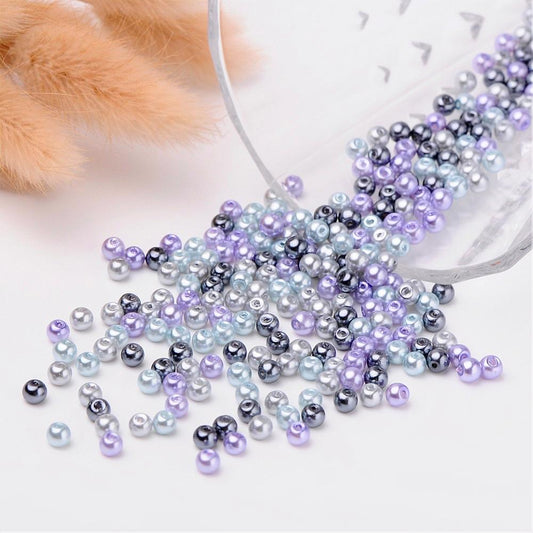 Glass Pearl Beads 4mm (0.8mm Hole) Silver Grey Mix - Pack of 400