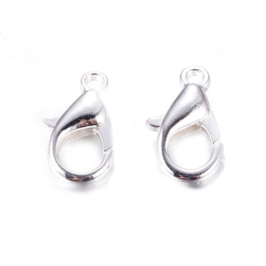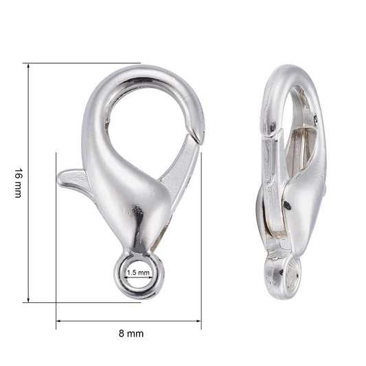 Silver Tone Lobster Clasp 16 mm x 8 mm, Hole 2 mm - Pack of 100