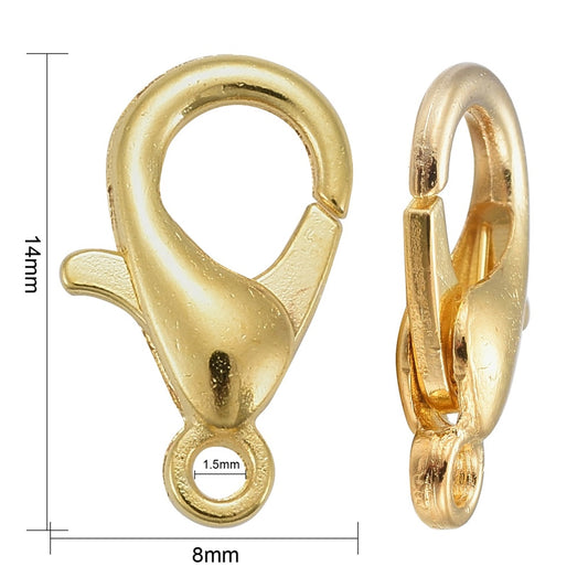 Golden Lobster Clasp 14 x 8 mm - Pack of 100