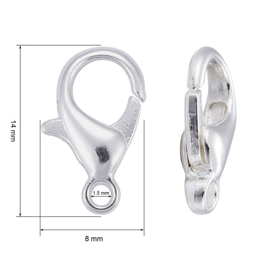 Silver Tone Lobster Clasp 14x8mm - Pack of 100