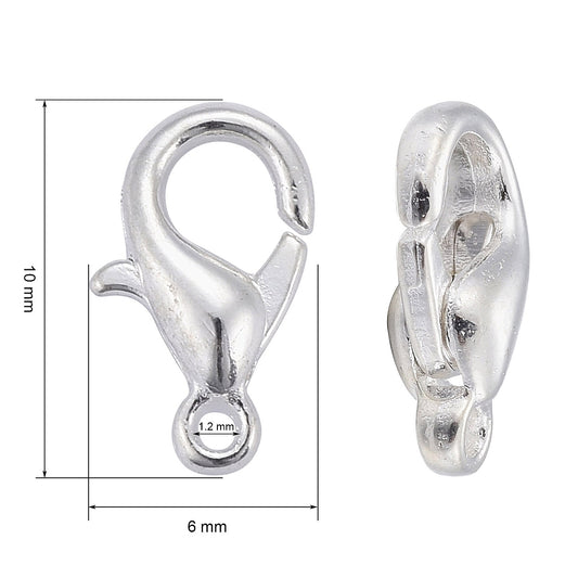 Silver Tone Lobster Clasp 10 x 6 mm - Pack of 100