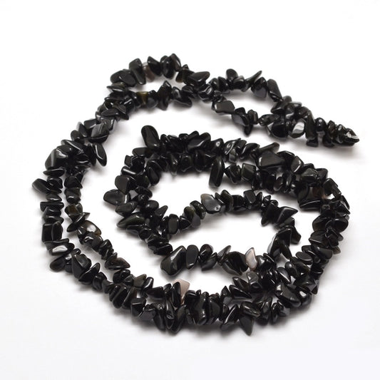 Natural Obsidian Chip Beads 5-8mm Wide - 32" Strand