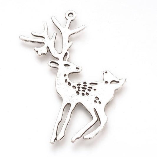 Large Antique Silver Stag Charms 60x47x2mm (2mm Hole) - Pack of 2