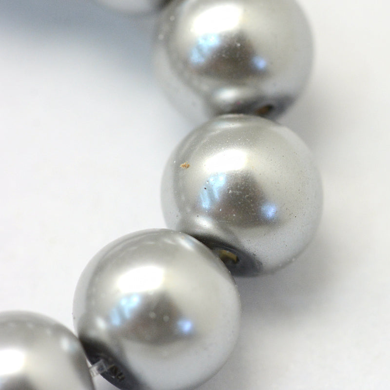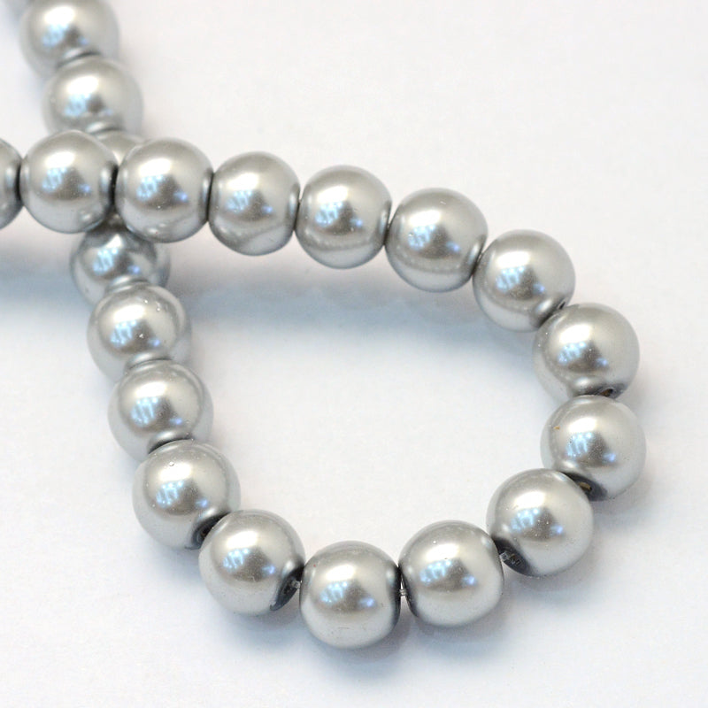 Glass Pearl Beads 8mm (1.0mm Hole) Silver - One Strand of Approx 105 Beads